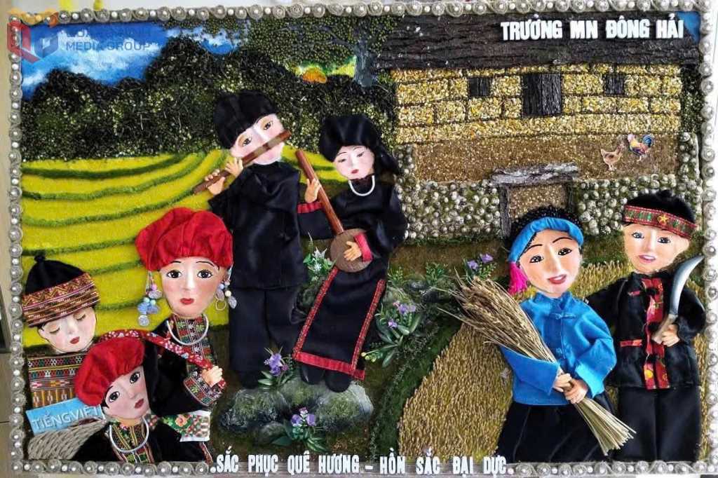 Một bức tranh ghép từ hạt của học sinh Trường Mầm non Đông Hải (xã Đông Ngũ).