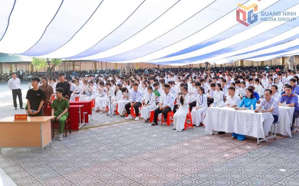 Phiên tòa giả định tuyên truyền về Luật Trật tự, ATGT đường bộ tại Trường THPT Uông Bí (phường Uông Bí).