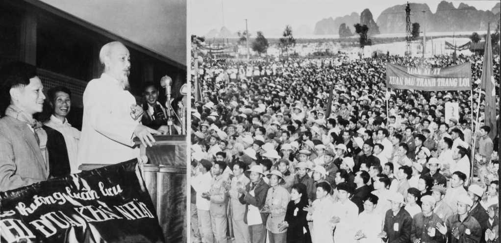 Bác Hồ nói chuyện với cán bộ, nhân dân khu Hồng Quảng tại sân vận động Hòn Gai, ngày 04/10/1957. Ảnh tư liệu.