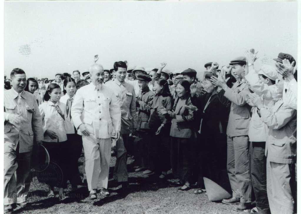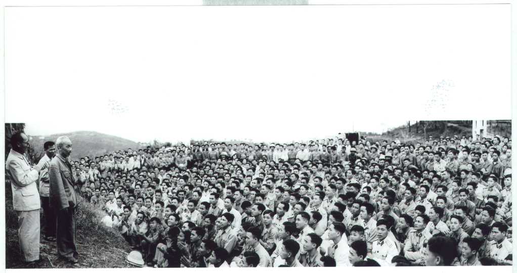 Bác Hồ thăm, nói chuyện với cán bộ, chiến sĩ Trung đoàn 244 ngày 29/3/1959. Ảnh tư liệu.