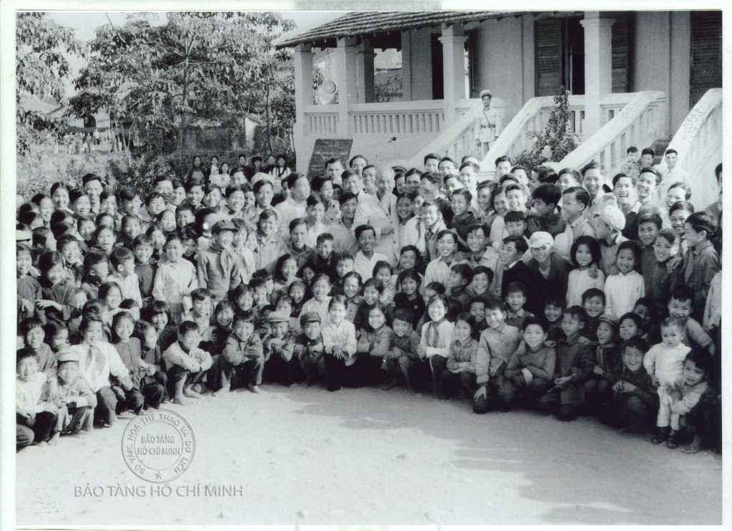 Bác Hồ thăm giáo viên, học sinh Trường cấp I, II tỉnh Hải Ninh. Ảnh tư liệu.