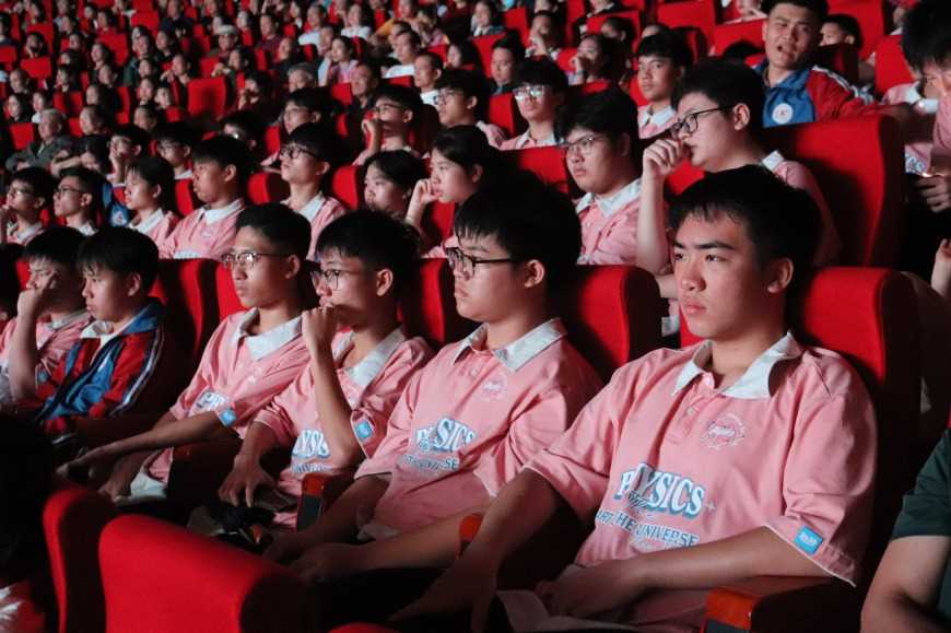 Khán giả xem phim "Mưa đỏ" tại Cung Quy hoạch, Hội chợ và Triển lãm tỉnh.