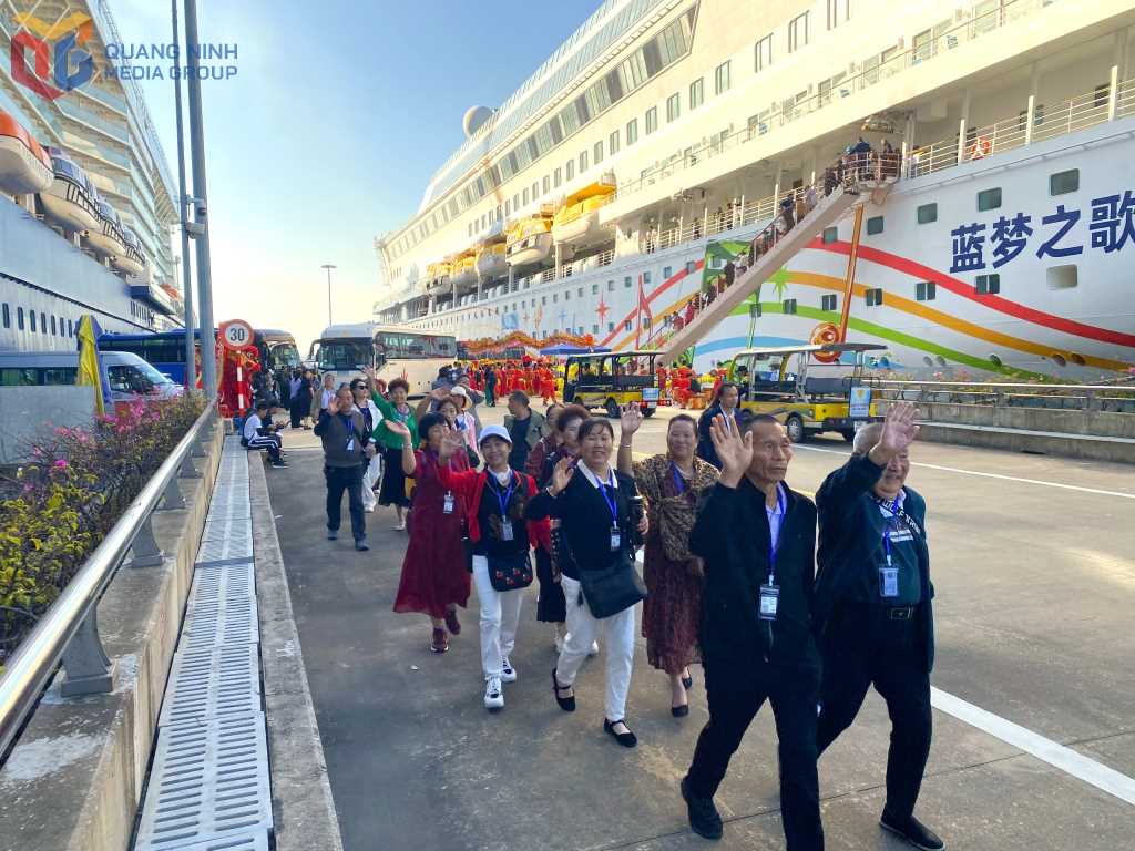 Sáng 14/11, chuyến tàu biển Blue Dream Melody từ thành phố Bắc Hải (Quảng Tây, Trung Quốc) đã cập Cảng tàu khách quốc tế Hạ Long, đưa hơn 1.500 khách du lịch đến Quảng Ninh. Ảnh: Hoàng Quỳnh