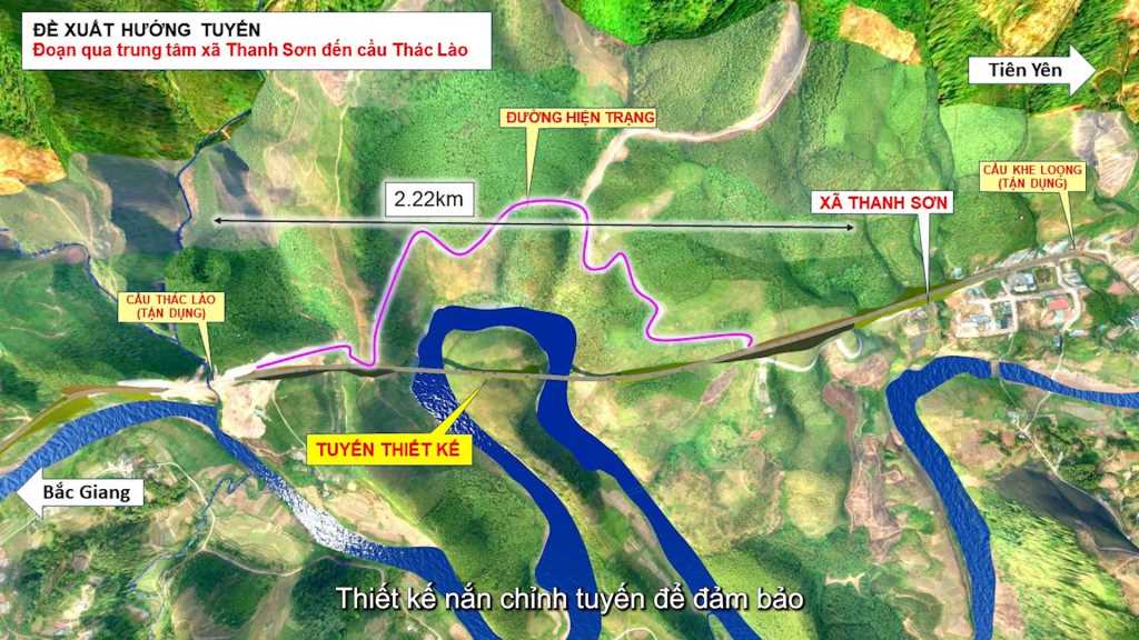 Phối cảnh Dự án nâng cấp cải tạo đường tỉnh 330 nhìn từ trên cao, nhiều khúc cua tay áo sẽ được thay thế bằng cầu vượt sông và cầu cạn.