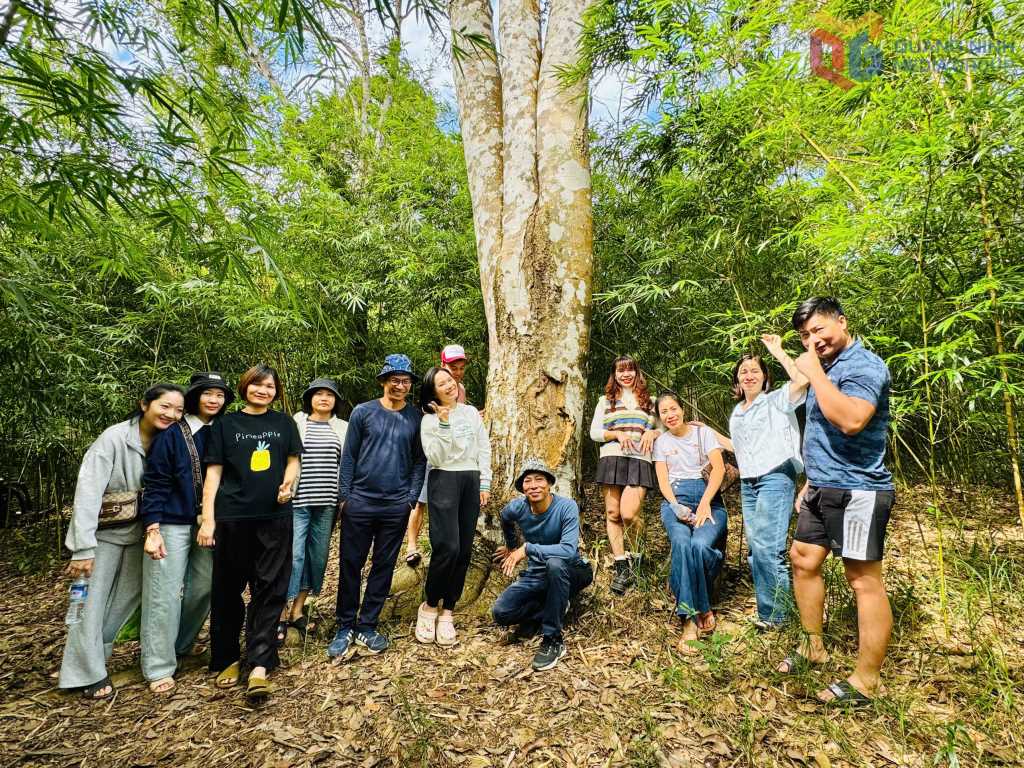 Du khách chụp ảnh lưu niệm khi tham quan rừng nguyên sinh Kỳ Thượng.