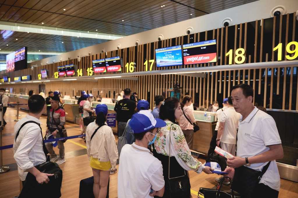 Hành khách làm thủ tục trước chuyến bay tại Cảng hàng không quốc tế Vân Đồn.