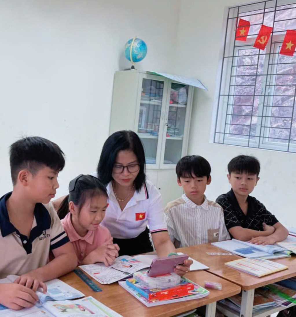 Cô và trò Trường Liên cấp Đảo Trần (đặc khu Cô Tô) hướng về Đại hội Đại biểu Đảng bộ tỉnh lần thứ XVI qua theo dõi trên điện thoại.