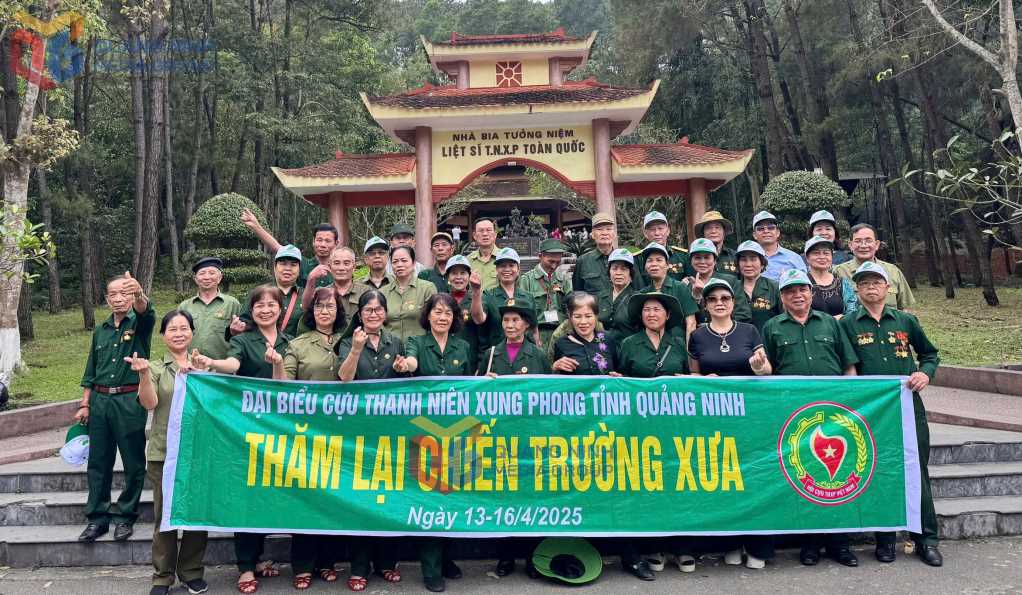 Đại biểu TNXP tỉnh Quảng Ninh thăm lại chiến trường xưa, thắp nến tri ân các anh hùng liệt sĩ tại khu di tích Ngã ba Đồng Lộc tỉnh Hà Tĩnh, tháng 4/2025.
