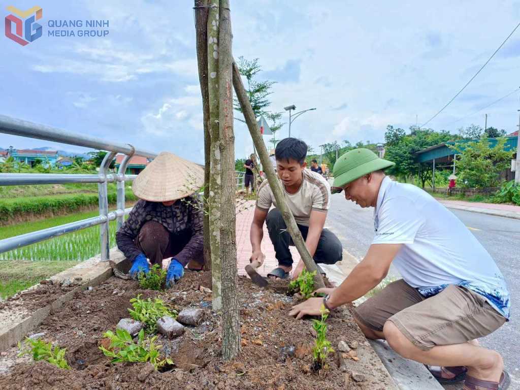 Hội viên, nông dân xã Ba Chẽ tham gia trồng hoa, tạo cảnh quan môi trường xanh - sạch - đẹp. Ảnh: Phạm Lợi.