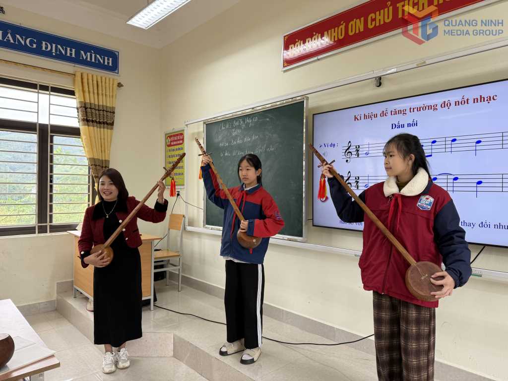 Tiết học nhạc của học sinh Trường TH&THCS Đồng Tâm (xã Lục Hồn) - ngôi trường vừa được khởi công xây dựng để trở thành trường nội trú liên cấp.