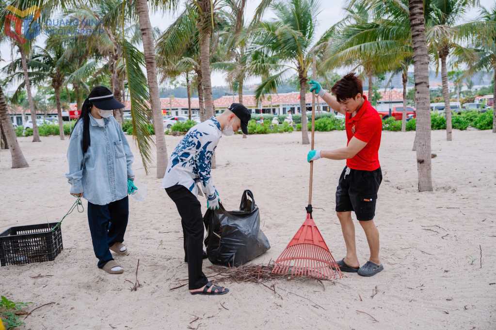 Người dân phường Bãi Cháy tham gia dọn dẹp vệ sinh, thu gom rác thải trên bãi biển.