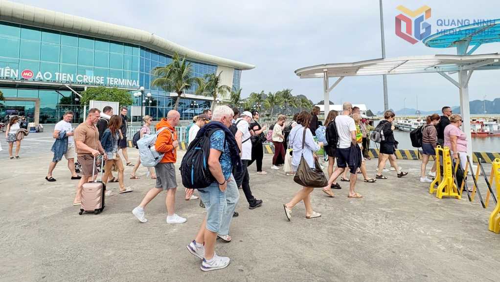 Du khách quốc tế tại Cảng Quốc tế Ao Tiên lên tàu nghỉ dưỡng tại các tuyến đảo.