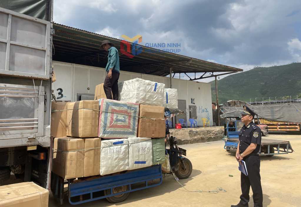 Hải quan Cửa khẩu Hoành Mô kiểm tra hàng hoá XNK.