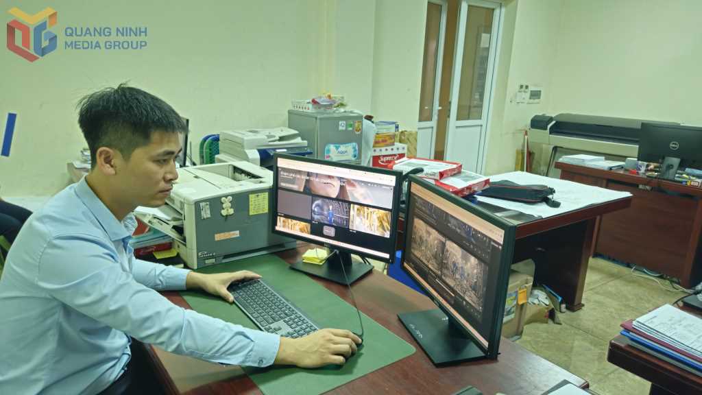 Anh Nguyễn Ngọc Toàn, Bí thư Đoàn Thanh niên, Phó Trưởng phòng Kỹ thuật - Công nghệ mỏ, Công ty CP Than Núi Béo ứng dụng công nghệ Al trong sản xuất video tuyên truyền về an toàn lao động.