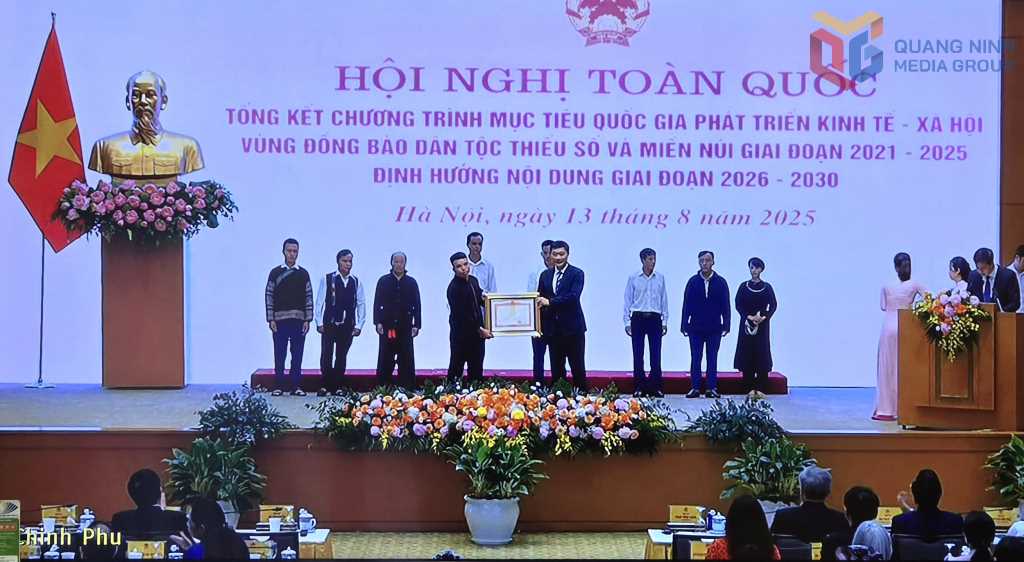 Đại diện thôn Phiêng Sáp (xã Lục Hồn, tỉnh Quảng Ninh) nhận Bằng khen của Thủ tướng Chính phủ vì có thành tích xuất sắc trong thực hiện Chương trình mục tiêu quốc gia giai đoạn 2021-2025.
