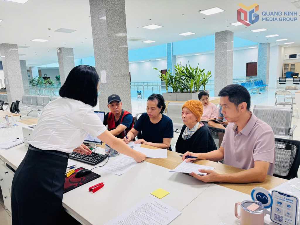Cán bộ Phòng công chứng số 1 Sở Tư pháp hướng dẫn người dân làm thủ tục. Ảnh: Tạ Quân