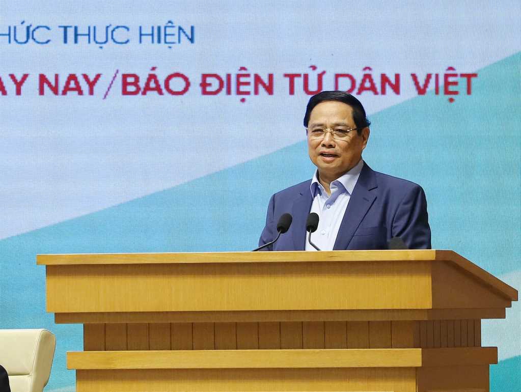 Đồng chí Phạm Minh Chính, Ủy viên Bộ Chính trị, Thủ tướng Chính phủ phát biểu định hướng hội nghị trước khi bước vào đối thoại. Ảnh: Báo điện tử Dân Việt.