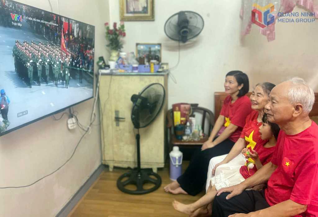 Tại Quảng Ninh, vùng đất mỏ anh hùng, nơi phên giậu phía Đông Bắc của Tổ quốc, không khí theo dõi lễ diễu hành cũng sôi động và tràn đầy cảm xúc. Dù không thể có mặt ở Thủ đô, hàng nghìn người dân trong tỉnh đã cùng nhau dõi theo từng bước đi của đoàn quân qua màn hình lớn tại các điểm sinh hoạt cộng đồng. Từ nhà văn hóa, khu dân cư cho đến từng mái nhà, mọi người đều tụ họp từ sáng sớm, háo hức chờ đợi để cùng sống lại tinh thần hào hùng của ngày Độc lập. Những tràng pháo tay vang lên, ánh mắt dõi theo đầy xúc động, nụ cười xen lẫn niềm tự hào… tất cả đã hòa thành một bức tranh rực rỡ về tinh thần yêu nước, về niềm tin son sắt vào Đảng và Tổ quốc.