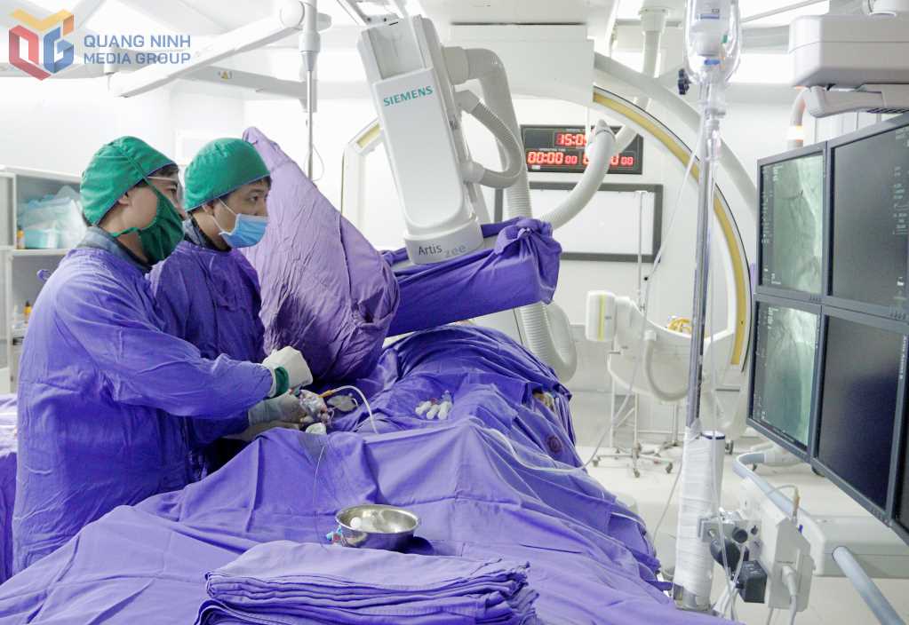 Đầu tư y tế cũng phát huy rõ hiệu quả với việc phát triển nhiều kỹ thuật mới, chuyên sâu. Ông Lưu Minh Tân (81 tuổi, phường Hồng Gai) nhập viện Bệnh viện Đa khoa tỉnh trong tình trạng đau thắt ngực dữ dội, suy tim, tăng huyết áp kèm block nhánh phải vào cuối tháng 7/2025. Qua thăm khám và chụp mạch, các bác sĩ phát hiện bệnh nhân hẹp tắc động mạch vành. Chỉ hơn 30 phút sau khi vào viện, ê-kíp Khoa Phẫu thuật và can thiệp tim mạch đã tái thông mạch vành thành công bằng kỹ thuật can thiệp đặt stent.