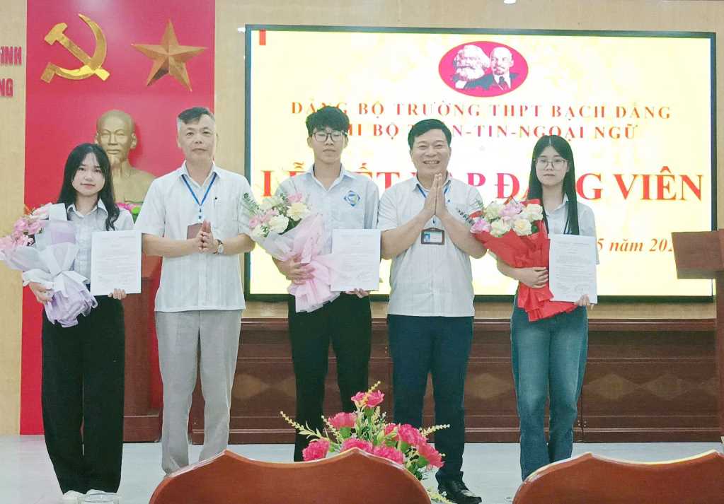 Đảng bộ Trường THPT Bạch Đằng (phường Quảng Yên) tổ chức Lễ kết nạp đảng viên mới là những học sinh lớp 12 có thành tích xuất sắc trong học tập và rèn luyện. Ảnh: Thùy Dương (CTV)