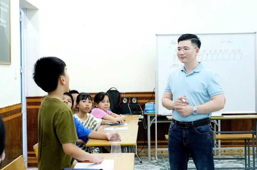 Vũ Trí Tuệ dạy kỹ năng sống miễn phí cho các em nhỏ trên địa bàn phường Uông Bí. Ảnh: Nhân vật cung cấp.
