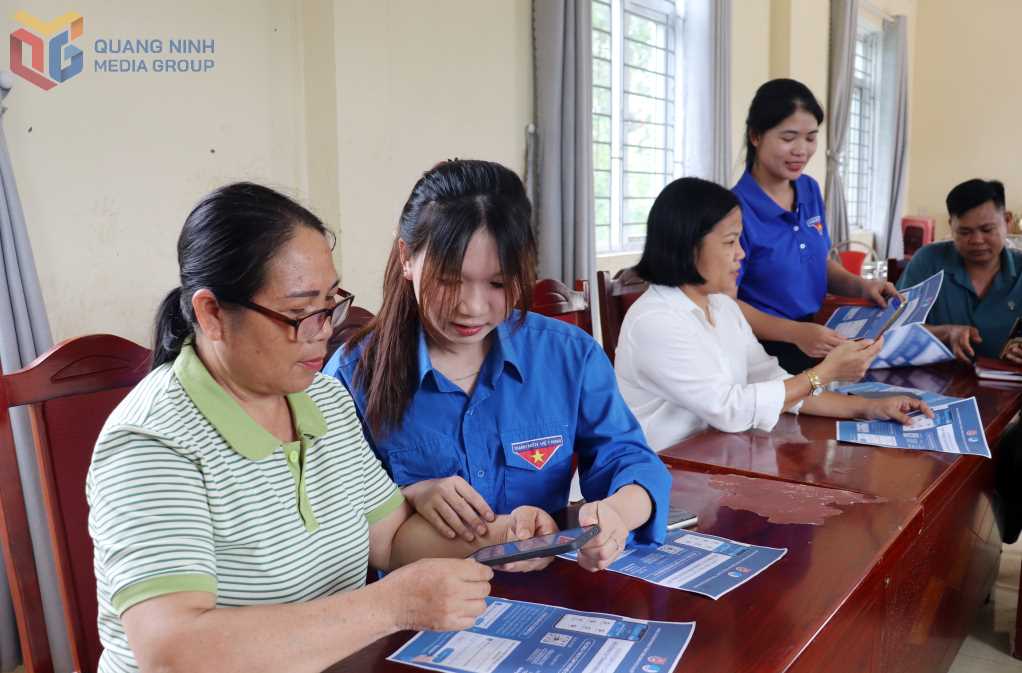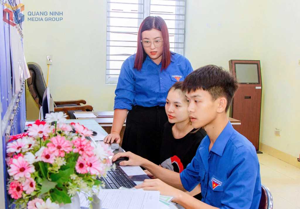 Đảng viên trẻ Đào Thị Duyên hướng dẫn người dân thực hiện thao tác nộp hồ sơ giải quyết TTHC sau khi địa phương vận hành mô hình chính quyền hai cấp.