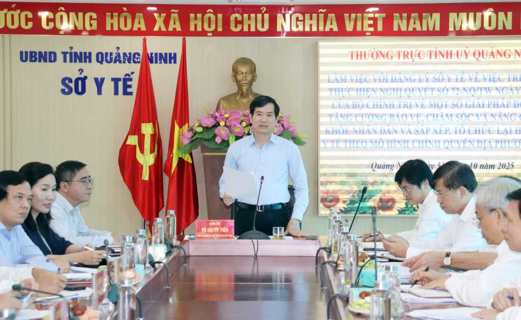 Ngày 1/11/2025, Quảng Ninh chính thức vận hành mô hình hệ thống y tế 2 cấp, trở thành địa phương đầu tiên trong cả nước triển khai cách làm mới này. Tại buổi làm việc với Đảng ủy Sở Y tế sáng 31/10, đồng chí Vũ Quyết Tiến, Phó Bí thư Tỉnh ủy, Chủ tịch Ủy ban MTTQ tỉnh, đã có những định hướng chỉ đạo chiến lược nhằm xây dựng hệ thống y tế tỉnh tinh gọn, đồng bộ, thông minh, hội nhập, đáp ứng yêu cầu phát triển nhanh, bền vững của tỉnh, cụ thể hóa Nghị quyết số 72-NQ/TW của Bộ Chính trị và Nghị quyết Đại hội Đảng bộ tỉnh lần thứ XVI.