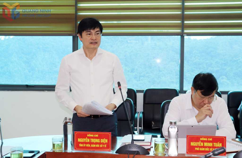 Giám đốc Sở Y tế Nguyễn Trọng Diện báo cáo kết quả triển khai Nghị quyết 72 gắn với sắp xếp, tổ chức vận hành mô hình hệ thống y tế 2 cấp.