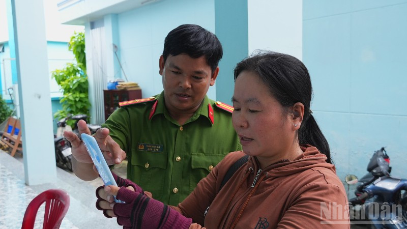 Nhờ có sự hỗ trợ của lực lượng công an, chỉ trong vài phút, bà Nguyễn Thị Lệ, xã Tân Phước 3, tỉnh Đồng Tháp đã tích hợp xong các loại giấy tờ vào ứng dụng VNeID trên điện thoại thông minh.