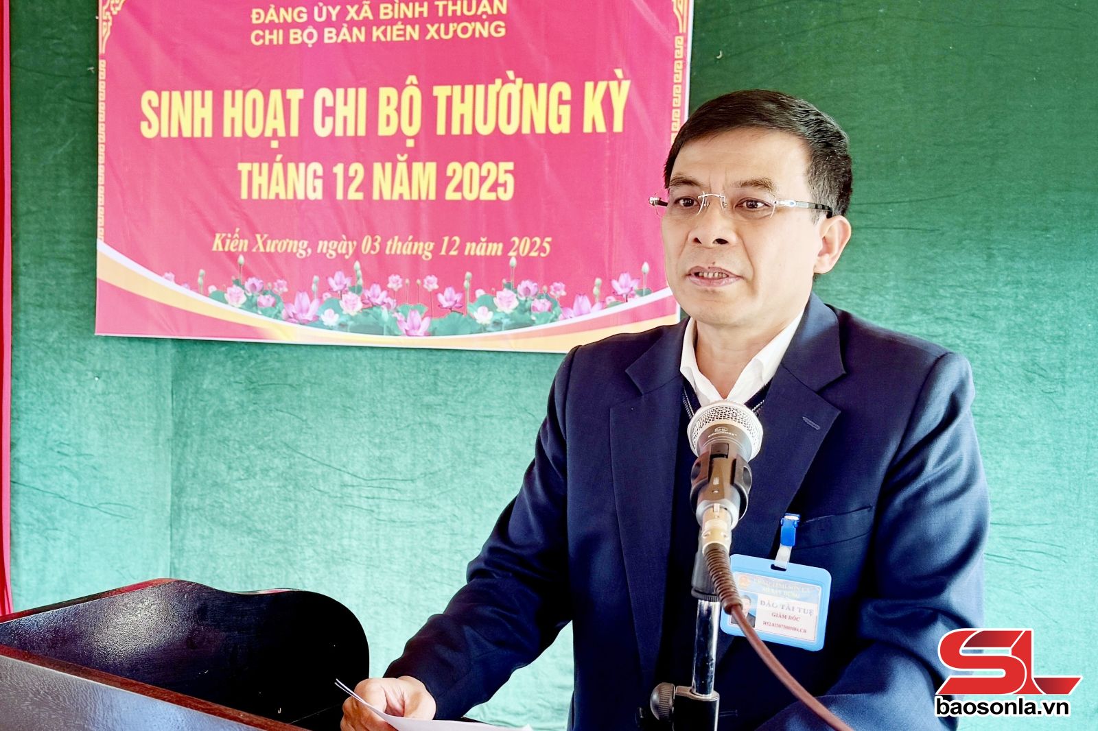 Ngày 3/12, đồng chí Đào Tài Tuệ, Ủy viên Ban Thường vụ Tỉnh ủy, Giám đốc Sở Xây dựng đã dự sinh hoạt thường kỳ tháng 12 với Chi bộ bản Kiến Xương, xã Bình Thuận.