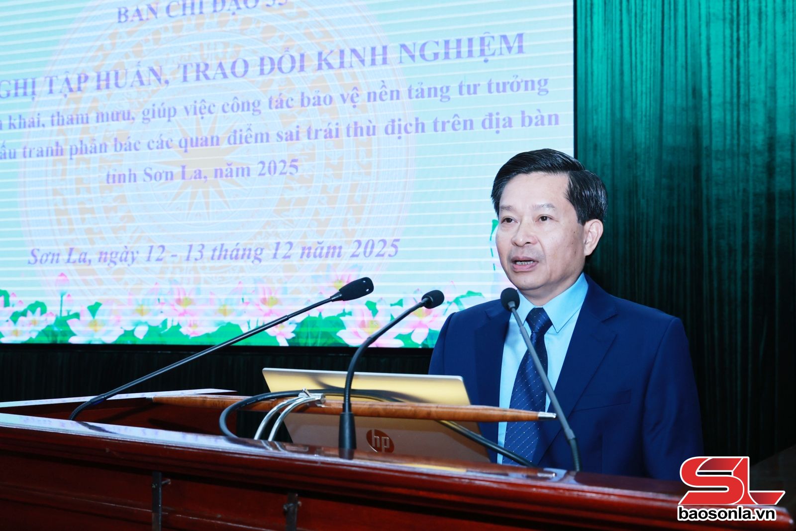 Tại hội nghị, các đại biểu đã được tiếp thu các chuyên đề về xây dựng, tổ chức lực lượng Ban Chỉ đạo 35 các cấp; một số kinh nghiệm ứng dụng khoa học - công nghệ, trí tuệ nhân tạo; bảo vệ bí mật Nhà nước; trao đổi kinh nghiệm về công tác bảo vệ nền tảng tư tưởng của Đảng và đấu tranh phản bác các quan điểm sai trái, thù địch trên địa bàn tỉnh Sơn La.