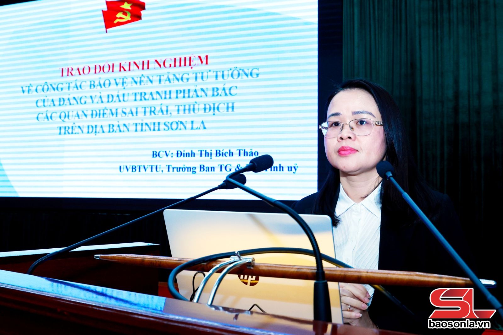 Phát biểu kết luận hội nghị, đồng chí Đinh Thị Bích Thảo, Ủy viên Ban Thường vụ Tỉnh ủy, Trưởng ban Tuyên giáo và Dân vận Tỉnh ủy, Phó trưởng ban Thường trực Ban Chỉ đạo 35 Tỉnh ủy, nhấn mạnh: Công tác bảo vệ nền tảng tư tưởng của Đảng; phản bác các quan điểm sai trái thù địch là nhiệm vụ đặc biệt quan trọng thường xuyên của cấp ủy, tổ chức đảng, trách nhiệm của cán bộ, đảng viên và nhân dân. Đồng chí đề nghị: Các cấp ủy, tổ chức đảng, cán bộ được phân công trực tiếp tham mưu công tác bảo vệ nền tảng tư tưởng của Đảng tập trung lãnh đạo, chỉ đạo, triển khai thực hiện nhiệm vụ được giao, chú trọng nắm bắt dư luận, lắng nghe tâm tư, nguyện vọng của nhân dân. Mỗi cán bộ, đảng viên, nhân dân đề cao cảnh giác trước những thông tin xấu độc, trước âm mưu, thủ đoạn của các thế lực thù địch; lan tỏa thông tin tích cực, đẩy lùi thông tin tiêu cực, góp phần củng cố niềm tin của nhân dân vào sự lãnh đạo của Đảng.