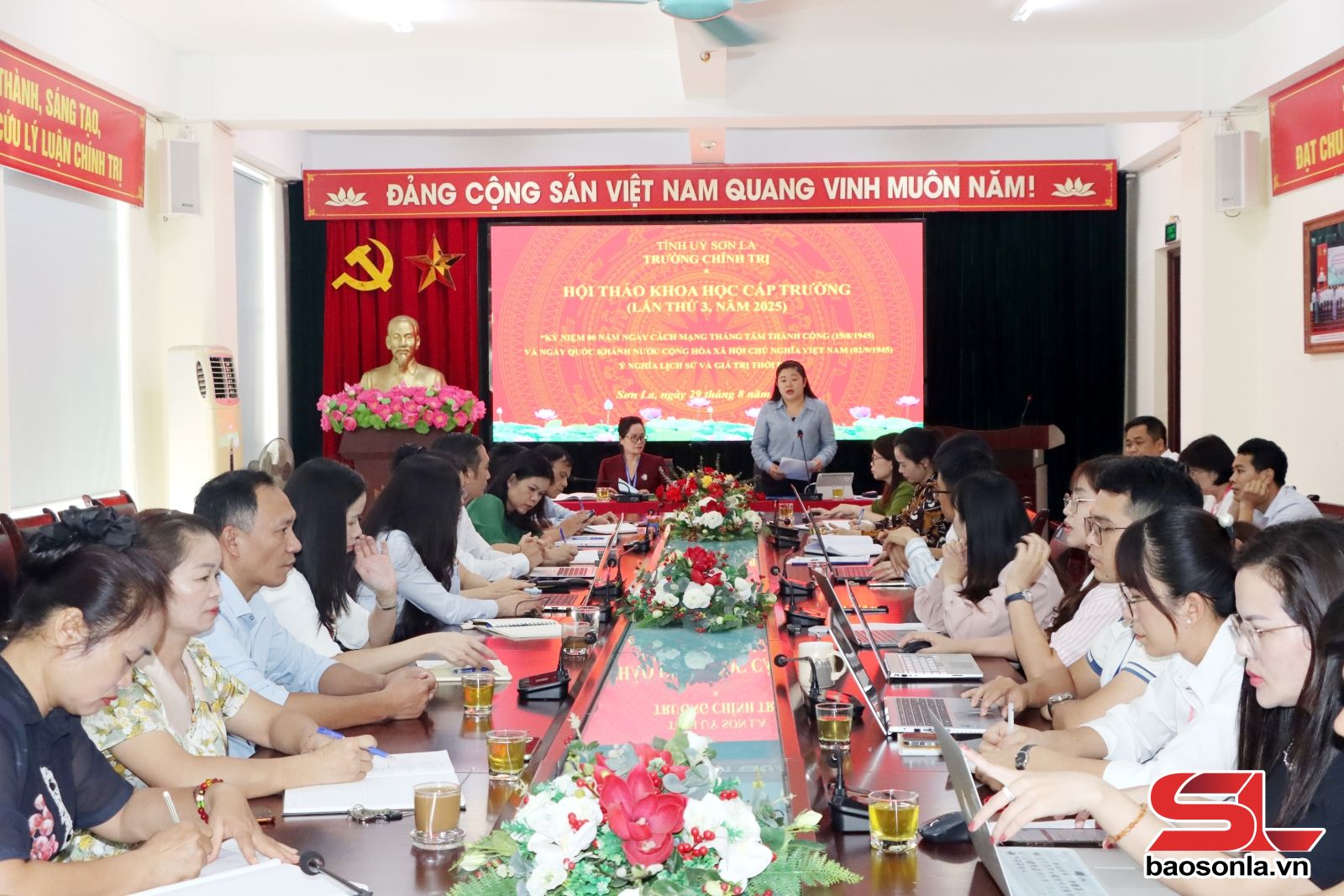 Tại Hội thảo đã nhận được 20 tham luận của lãnh đạo, giảng viên, viên chức Nhà trường tập trung phân tích về: Tính tất yếu của con đường cách mạng Việt Nam; giá trị thời đại của Cách mạng Tháng Tám; vai trò lãnh đạo của Đảng, Chủ tịch Hồ Chí Minh; giá trị to lớn của Tuyên ngôn Độc lập; những luận cứ phản bác quan điểm sai trái, xuyên tạc về Cách mạng tháng Tám; liên hệ với công cuộc đổi mới mô hình chính quyền địa phương và trách nhiệm của giảng viên Trường Chính trị trong truyền đạt lý luận chính trị. Những kết quả nghiên cứu, phân tích trong các tham luận thể hiện rõ trách nhiệm của đội ngũ giảng viên, viên chức Trường Chính trị tỉnh Sơn La đối với công tác tuyên truyền, giáo dục lý luận chính trị; góp phần củng cố niềm tin, ý chí quyết tâm thực hiện thắng lợi sự nghiệp đổi mới đất nước.
