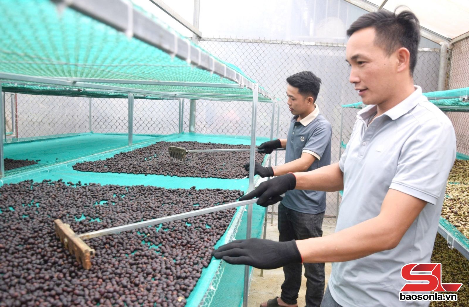 Tiêu biểu trong trồng và chế biến cà phê ở xã Chiềng Mai là HTX Nông nghiệp bản Sàng Nà Tre có 18 thành viên, trồng 30 ha cà phê hữu cơ. Các hộ thành viên được tập huấn kỹ thuật, cùng với kinh nghiệm nhiều năm canh tác cà phê nên cây cà phê ngày càng cho năng suất, chất lượng cao. Phấn khởi về thành quả của một vụ bội thu, Giám đốc HTX Cầm Văn Hoàng khoe: Vụ năm nay, HTX thu 600 tấn quả, giá bán từ 28.000 - 33.000 đồng/kg, tăng gần 10.000 đồng so với năm trước. Doanh thu gần 8 tỷ đồng, thu nhập mỗi thành viên từ 400 - 600 triệu đồng. HTX đang xây dựng sản phẩm cà phê OCOP, tập trung hoàn thiện quy trình sản xuất an toàn, đầu tư chế biến, đóng gói, thiết kế bao bì. Đồng thời, đẩy mạnh quảng bá, mở rộng thị trường và xây dựng thương hiệu.