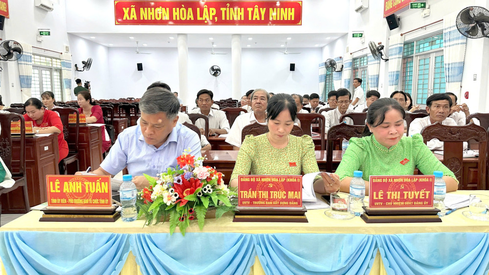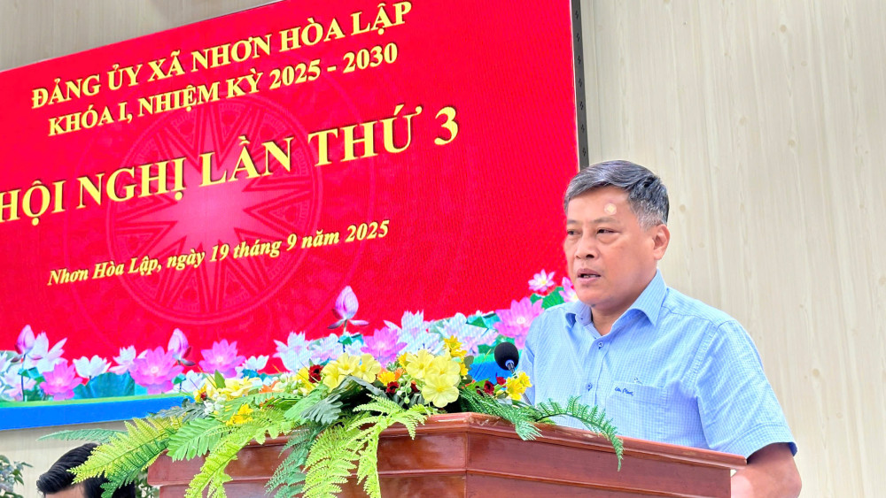 Phát biểu tại hội nghị, Tỉnh ủy viên, Phó Trưởng ban Tổ chức Tỉnh ủy Lê Anh Tuấn ghi nhận và biểu dương các kết quả được Đảng bộ xã Nhơn Hòa Lập. Mặc dù mới vận hành chính quyền địa phương 2 cấp, Đảng bộ xã Nhơn Hòa Lập đã khắc phục khó khăn sớm ổn định bộ máy tổ chức, thực hiện tốt các nhiệm vụ chính trị được giao.