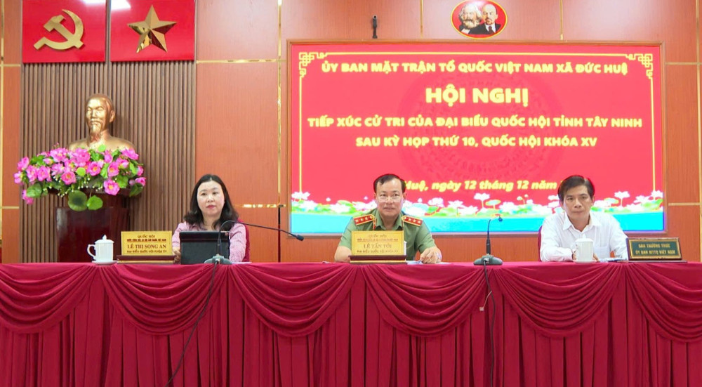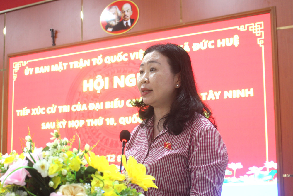 Tại buổi tiếp xúc, đại biểu Lê Thị Song An - Phó Trưởng đoàn chuyên trách Đoàn ĐBQH tỉnh Tây Ninh thông tin đến cử tri về kết quả của Kỳ họp thứ 10, Quốc hội khóa XV. Theo đó, tại kỳ họp này, Quốc hội thông qua 51 dự án luật và 39 nghị quyết quan trọng, tạo nền tảng pháp lý cho phát triển kinh tế - xã hội.