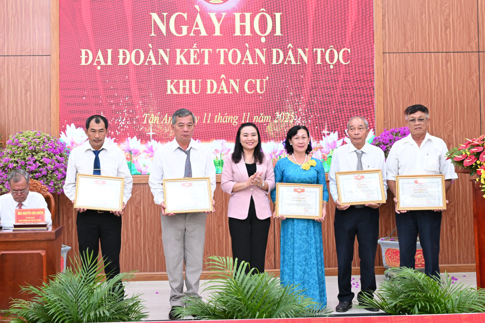 Dịp này, UBND tỉnh tặng Bằng khen cho 5 tập thể, cá nhân; UBMTTQ Việt Nam tỉnh tặng Bằng khen cho 4 tập thể, cá nhân; UBND phường Tân An tặng Giấy khen cho các tập thể, cá nhân có thành tích xuất sắc trong thực hiện Cuộc vận động “Toàn dân đoàn kết xây dựng nông thôn mới, đô thị văn minh” tại địa bàn khu phố An Thuận 2./.