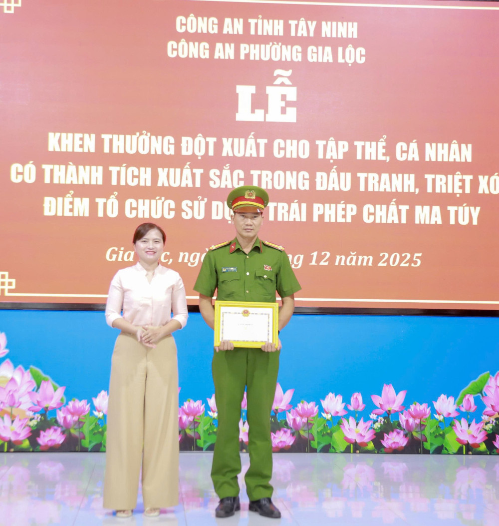 Phường Gia Lộc khen thưởng đột xuất trong đấu tranh, triệt xóa điểm tổ chức sử dụng trái phép chất ma túy