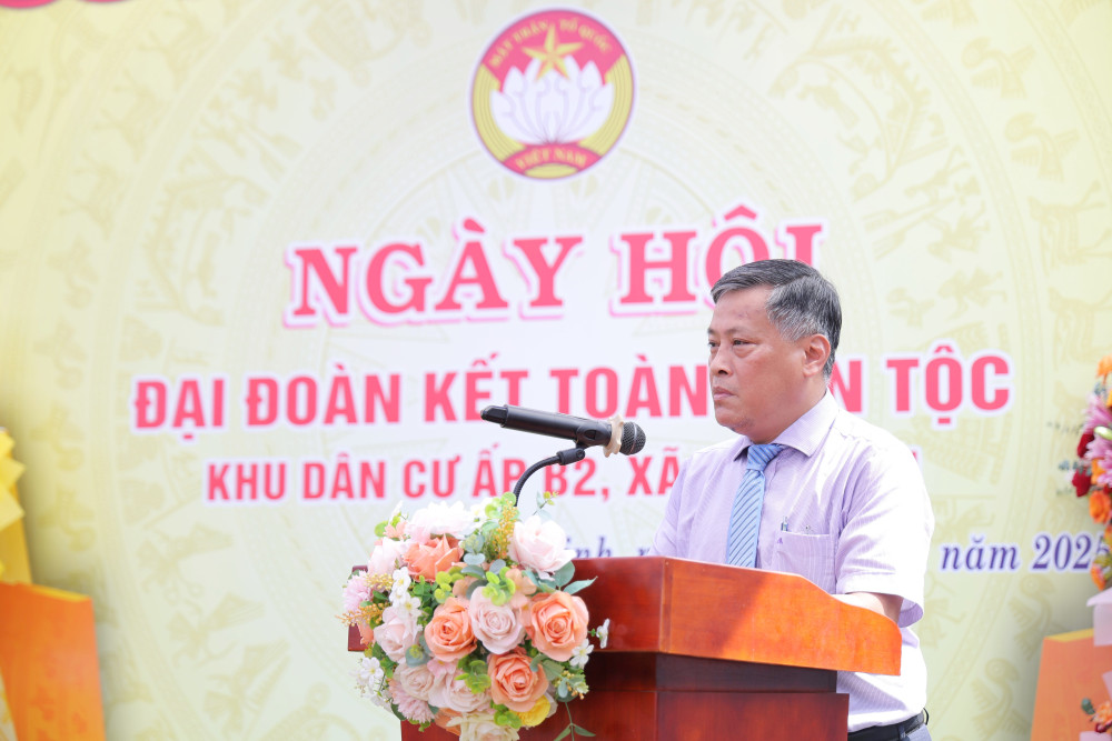 Tại ngày hội, các đại biểu cùng ôn lại 95 năm truyền thống vẻ vang của MTTQ Việt Nam và nghe báo cáo những kết quả đạt được của cán bộ và Nhân dân ấp B2 trong công tác xây dựng, phát triển địa phương