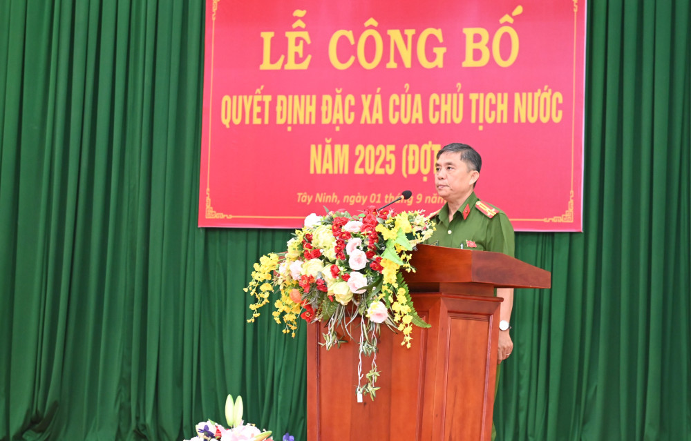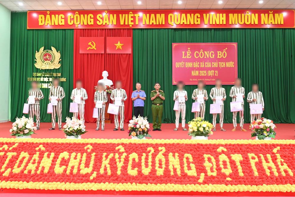 Tại buổi lễ, đại diện lãnh đạo Trại giam Cây Cầy công bố quyết định đặc xá của Chủ tịch nước năm 2025 (đợt 2), trong đó có 214 phạm nhân nam đang chấp hành án phạt tù tại Trại giam Cây Cầy được đặc xá trước thời hạn.
