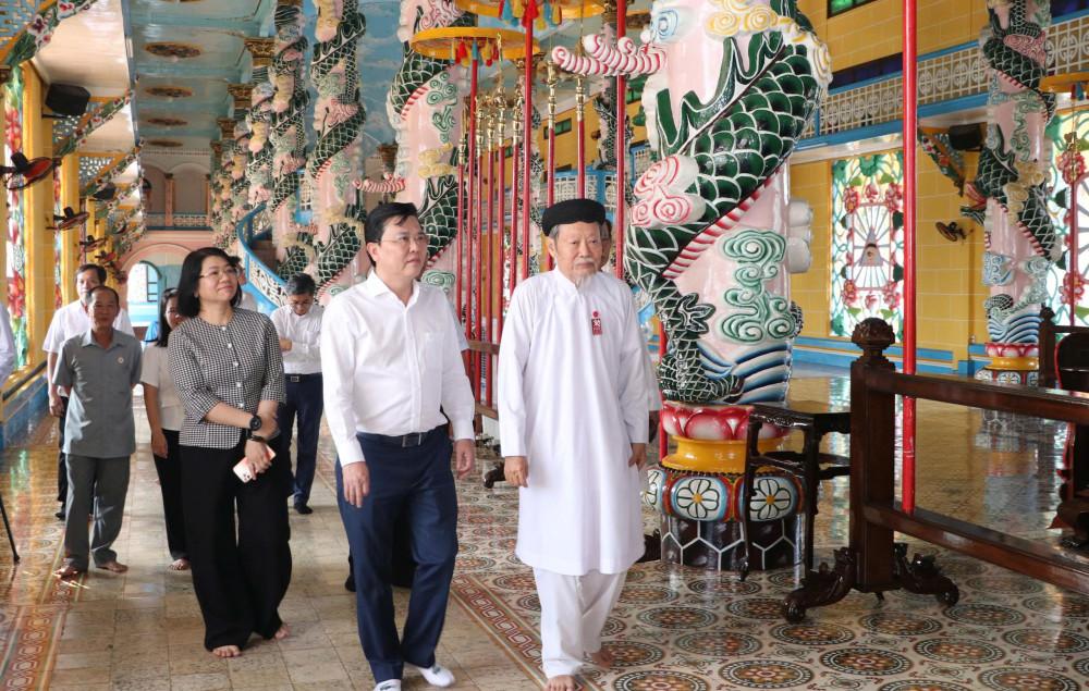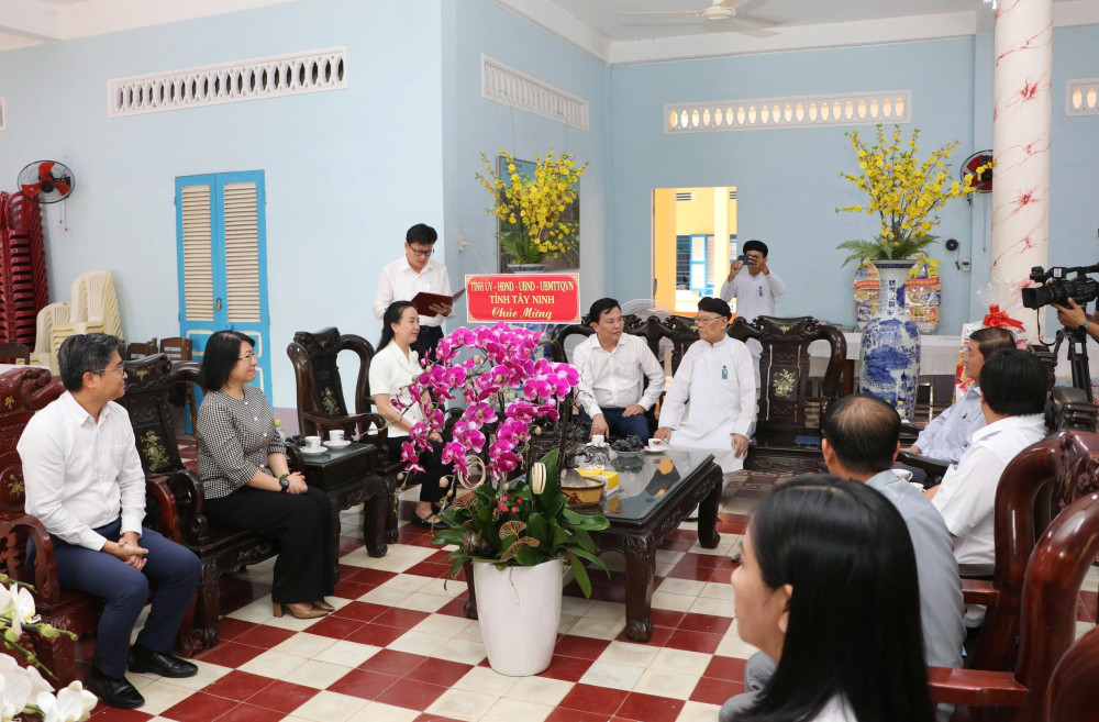 Phó Bí thư Tỉnh ủy, Chủ tịch UBMTTQ Việt Nam tỉnh Tây Ninh Nguyễn Thanh Hải thăm, chúc mừng các tổ chức, cá nhân tôn giáo Cao Đài nhân đại lễ kỷ niệm 101 năm ngày khai đạo