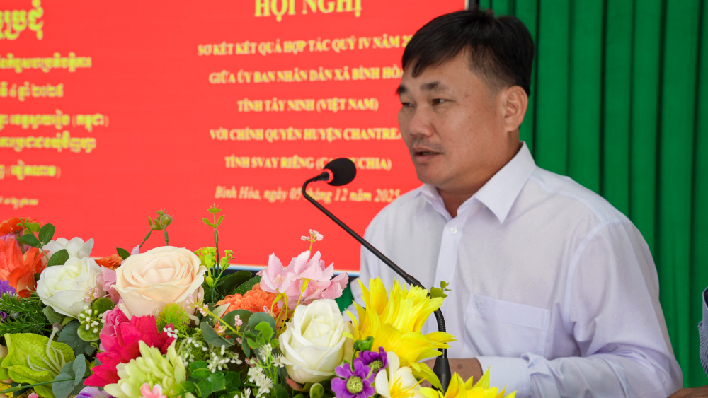 Phát biểu tại cuộc họp, Chủ tịch UBND xã Bình Hòa khẳng định mối quan hệ Việt Nam – Campuchia nói chung, giữa xã Bình Hòa và huyện Chantrea nói riêng, luôn được vun đắp và phát triển; tin tưởng rằng trên nền tảng đoàn kết và thiện chí, hai bên sẽ tiếp tục vượt qua khó khăn, triển khai hiệu quả các chương trình hợp tác, góp phần thực hiện thắng lợi mục tiêu phát triển năm 2025.