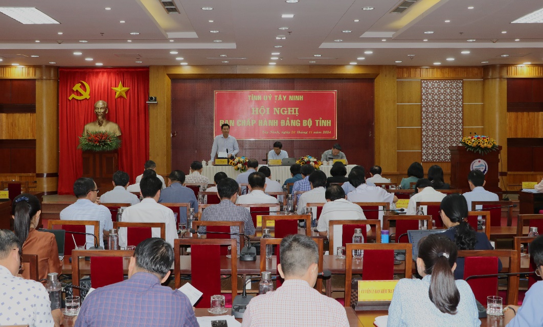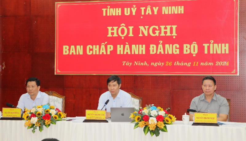 Chiều 26/11, Tỉnh ủy Tây Ninh tổ chức Hội nghị Ban Chấp hành Đảng bộ tỉnh lần thứ 40 để thông qua dự thảo Báo cáo chính trị của Ban Chấp hành Đảng bộ tỉnh Khóa XI trình Đại hội Đảng bộ tỉnh lần thứ XII. Đồng chí Nguyễn Thành Tâm – Bí thư Tỉnh ủy, Chủ tịch HĐND tỉnh; đồng chí Nguyễn Thanh Ngọc – Phó Bí thư Tỉnh ủy, Chủ tịch UBND tỉnh và đồng chí Nguyễn Mạnh Hùng – Phó Bí thư Tỉnh ủy chủ trì Hội nghị.