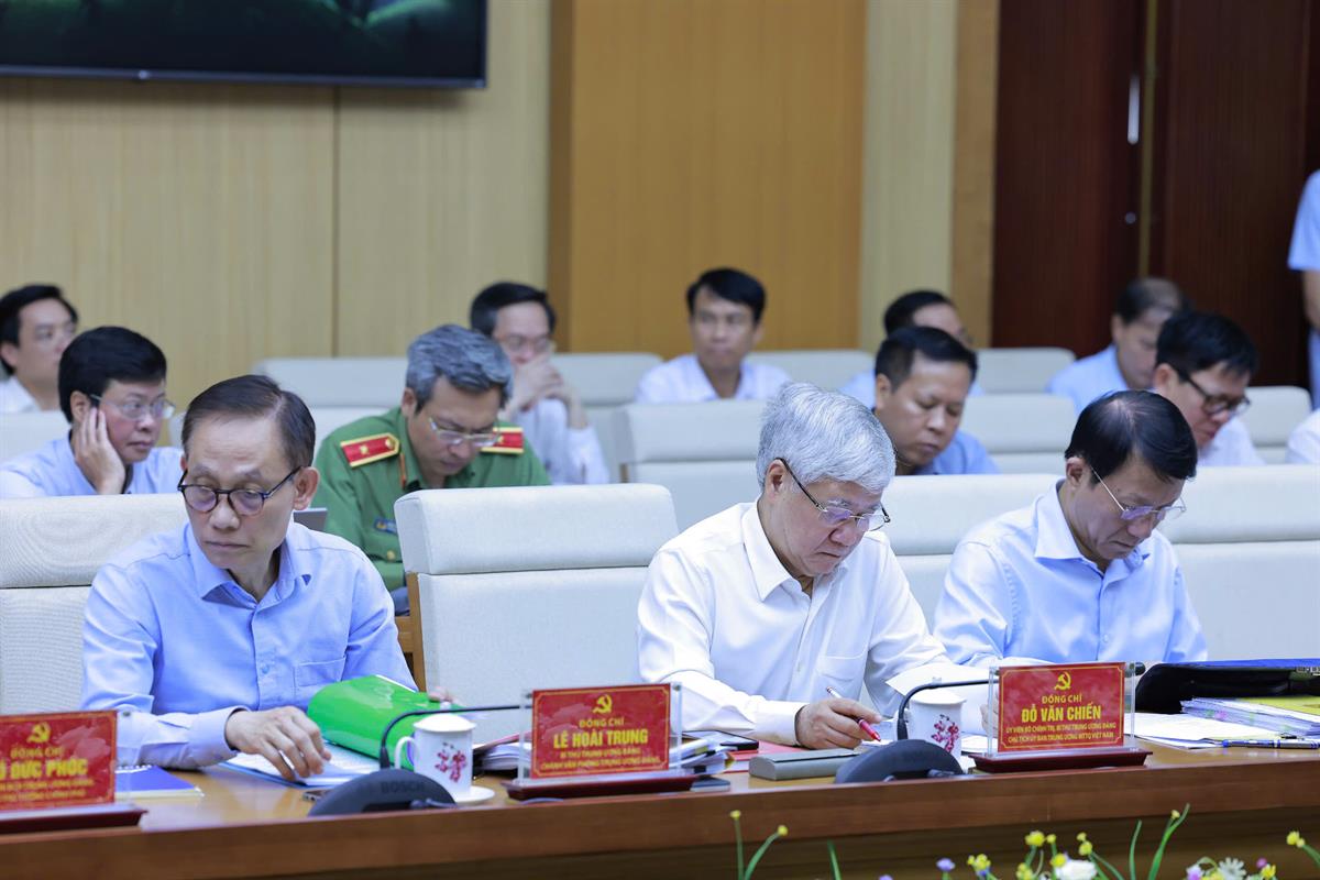 Qua làm việc với một số tỉnh trong diện sáp nhập cả 3 Miền Bắc, Trung, Nam, những khó khăn vướng mắc chung trong quá trình sáp nhập cơ bản là giống nhau, tôi yêu cầu Văn phòng trung ương Đảng khẩn trương tổng hợp lại thành từng nhóm vấn đề gửi tới các cơ quan chức năng liên quan để xem xét, hướng dẫn, giải quyết những kiến nghị của địa phương, cơ sở, bảo đảm phương thức giải quyết có tính tổng thể, thống nhất trong toàn quốc, nên đặt ra thời hạn cụ thể. Và có bộ phận chuyên theo dõi, đôn đốc.