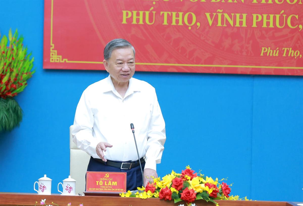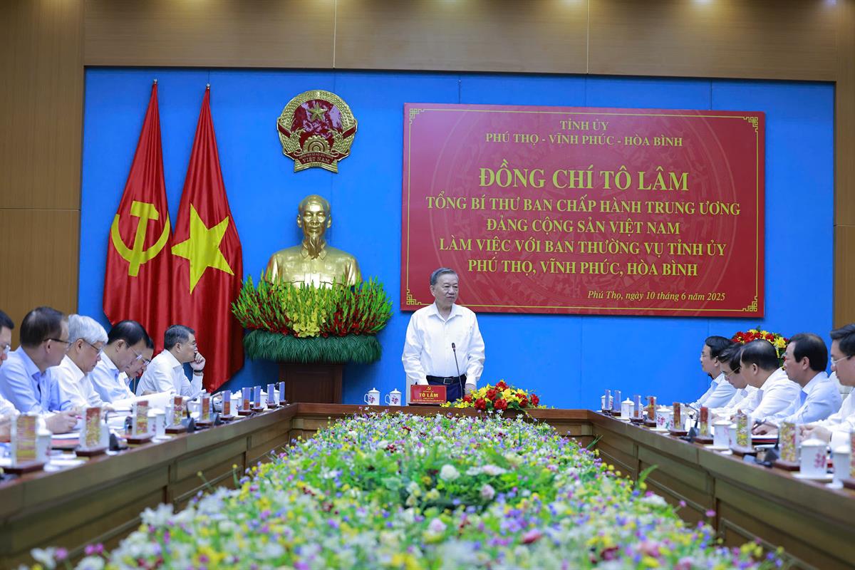 Toàn văn phát biểu của Tổng Bí thư Tô Lâm tại buổi làm việc với Tỉnh ủy Phú Thọ, Vĩnh Phúc, Hòa Bình