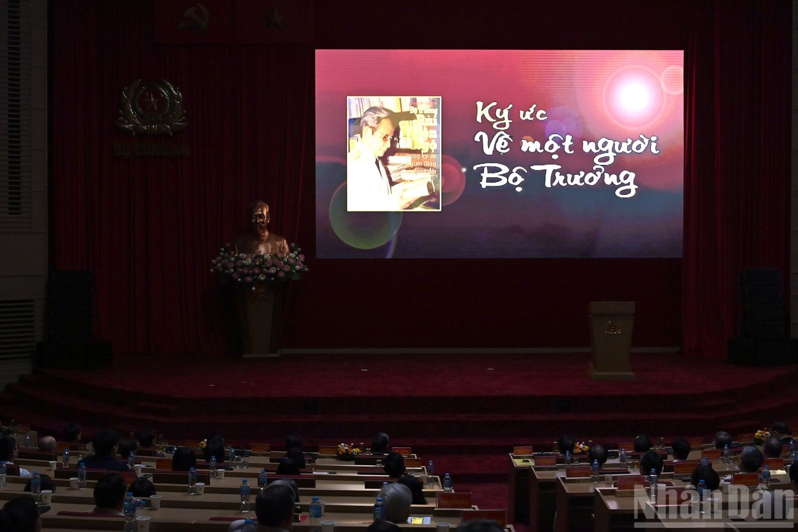 Các đại biểu xem phim tài liệu về cố Bộ trưởng, Thượng tướng Bùi Thiện Ngộ.