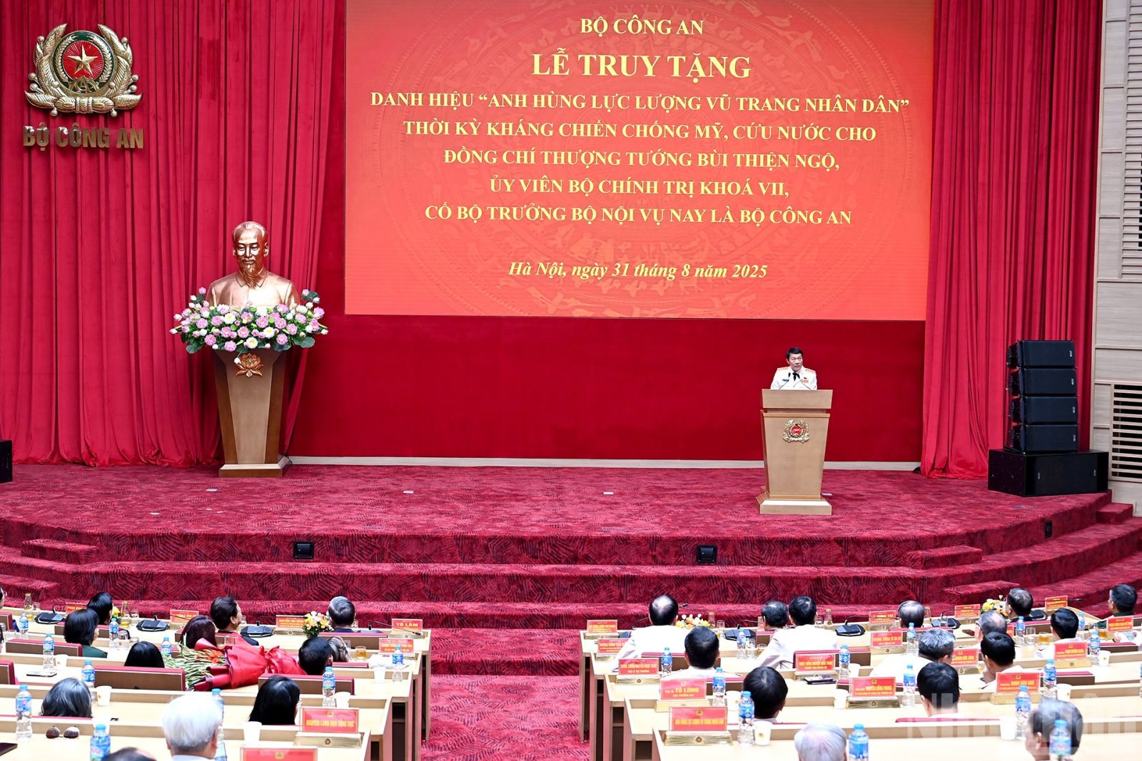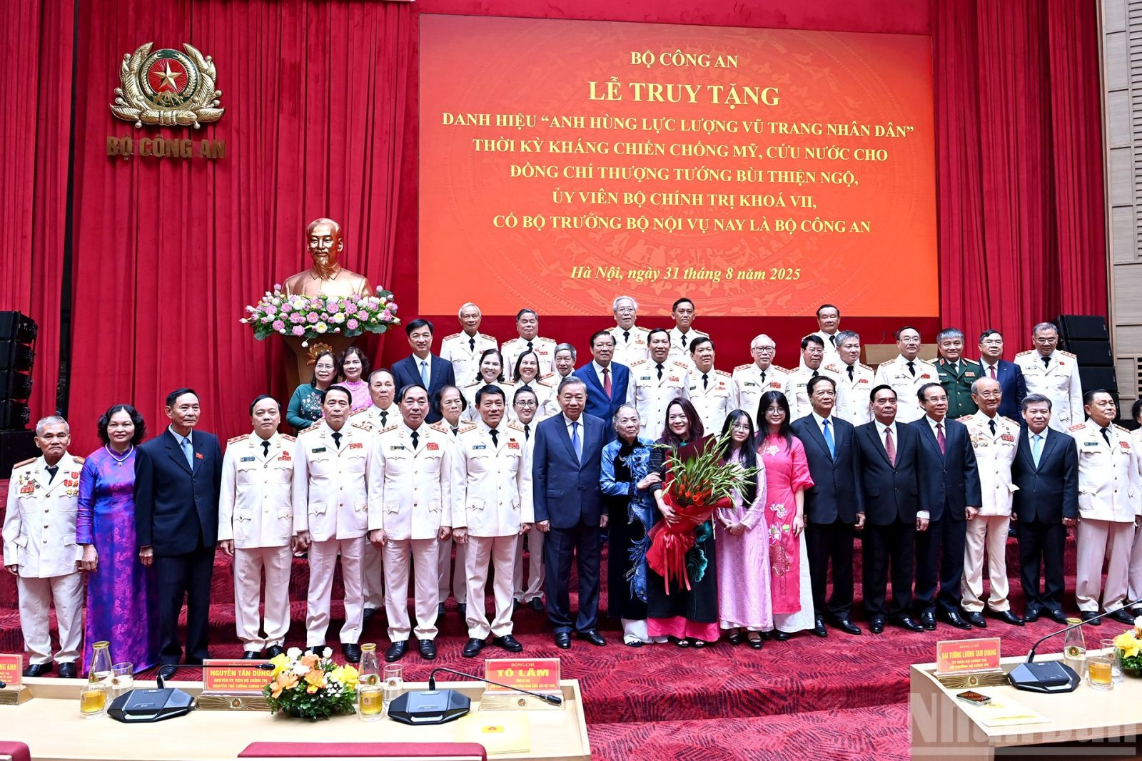 Sáng 31/8, tại Hà Nội, Tổng Bí thư Tô Lâm dự Lễ truy tặng Danh hiệu Anh hùng Lực lượng vũ trang nhân dân thời kỳ kháng chiến chống Mỹ, cứu nước cho đồng chí Thượng tướng Bùi Thiện Ngộ, Ủy viên Bộ Chính trị khóa VII, cố Bộ trưởng Nội vụ, nay là Bộ Công an.
