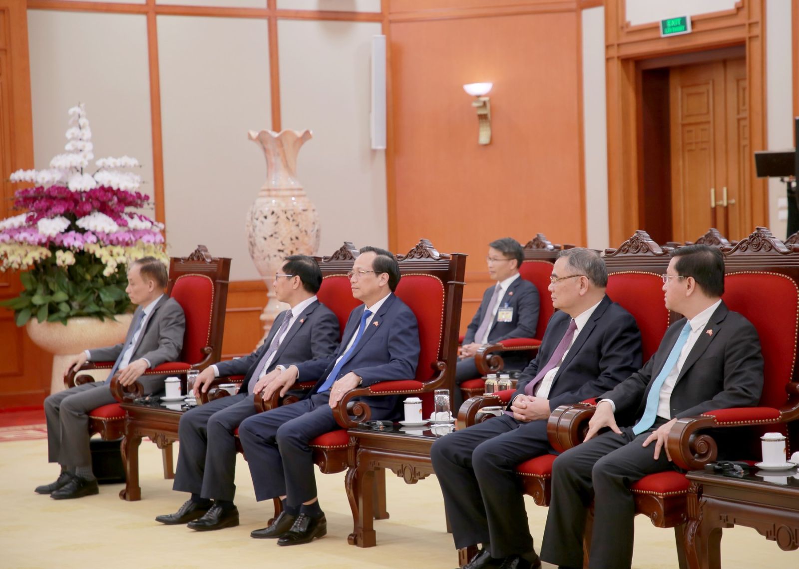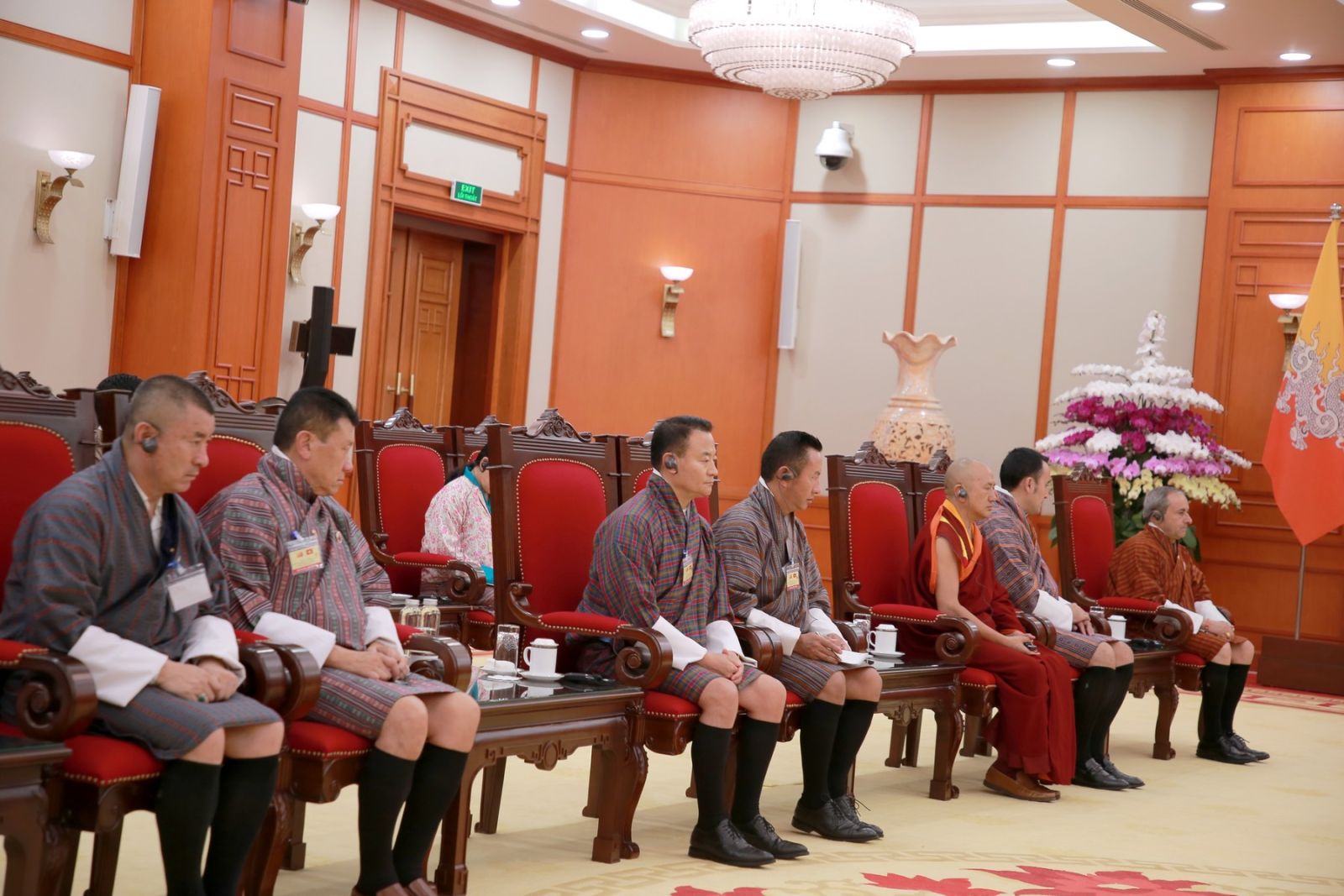 Các đại biểu tháp tùng Quốc vương Bhutan Jigme Khesar tham dự cuộc tiếp.