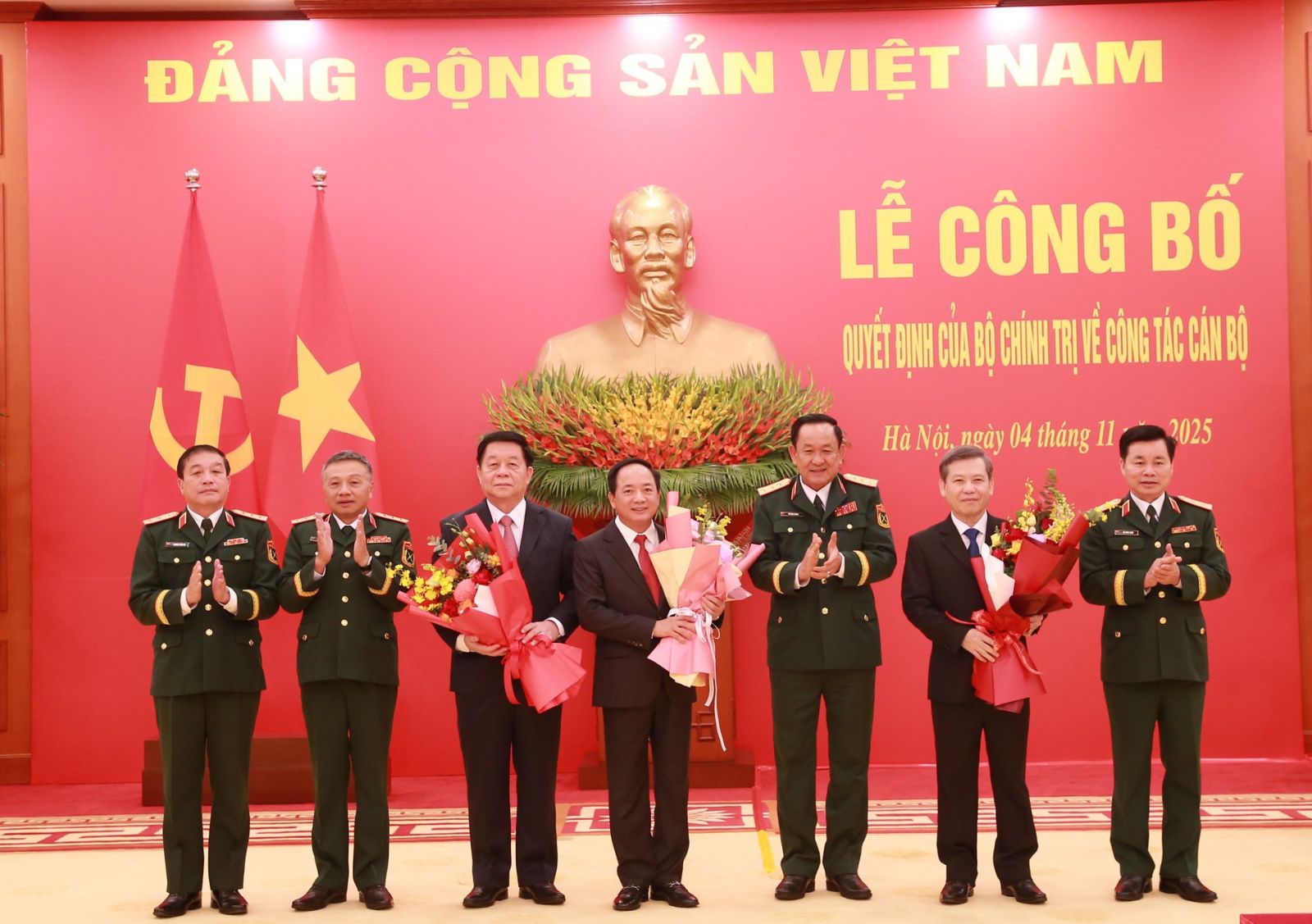 Tập thể  Lãnh đạo Tổng cục Chính trị Quân đội Nhân dân Việt Nam chúc mừng các đồng chí nhận nhiệm vụ mới.