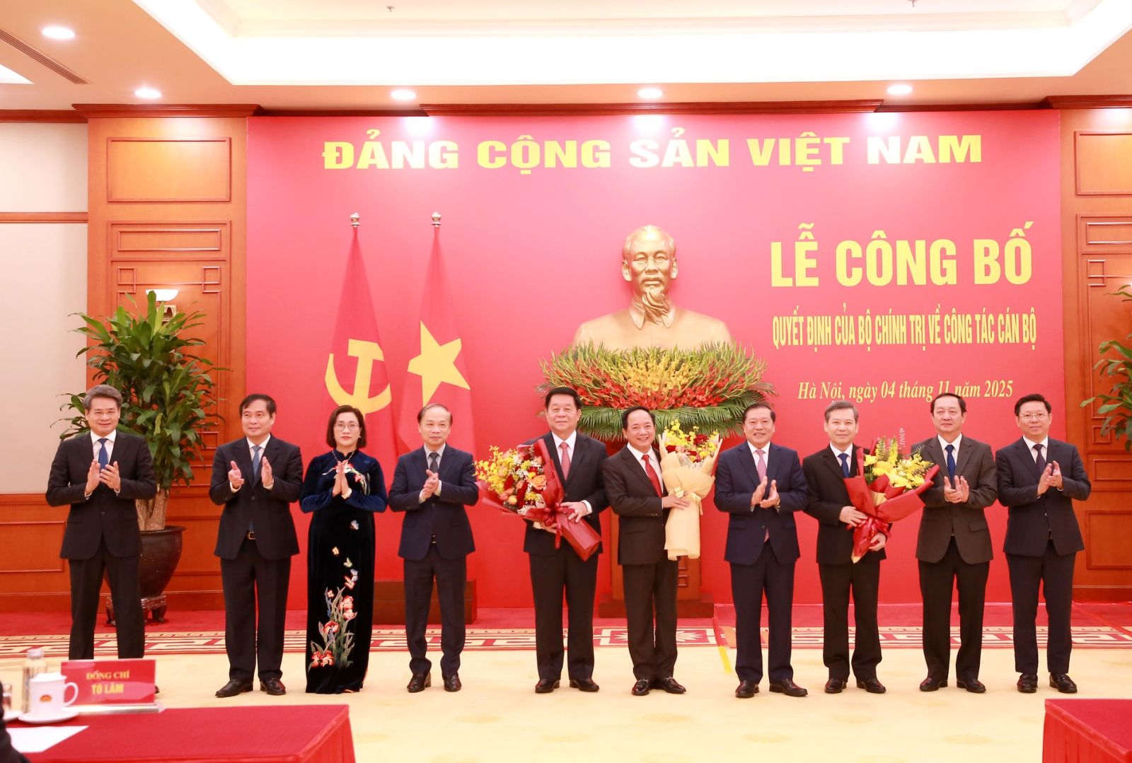 Ảnh: Tổng Bí thư Tô Lâm trao các quyết định Lãnh đạo Ban Tuyên giáo và Dân vận Trung ương, Ban Nội chính Trung ương